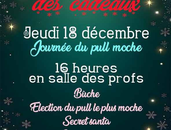 L’Amicale propose aux personnels de l’établissement la « Fête des cadeaux ». Au programme : élection du pull moche, le Secret Santa