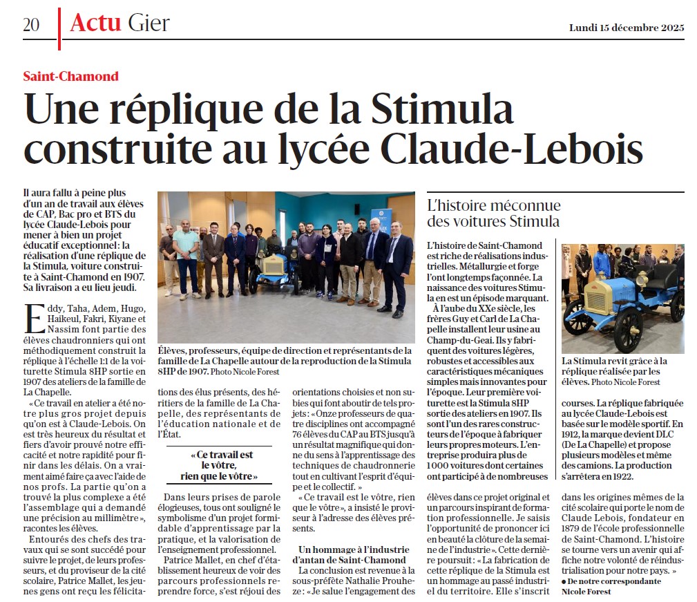 Article du journal « Le Progrès » – édition du 15 décembre 2025