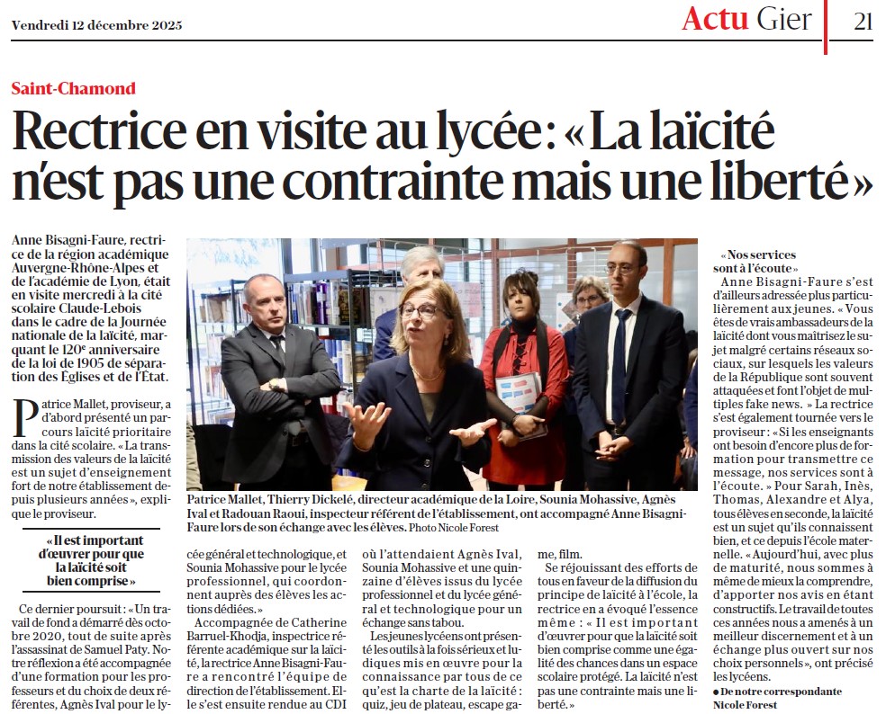 Article du journal « Le Progrès » – édition du 12 décembre 2025