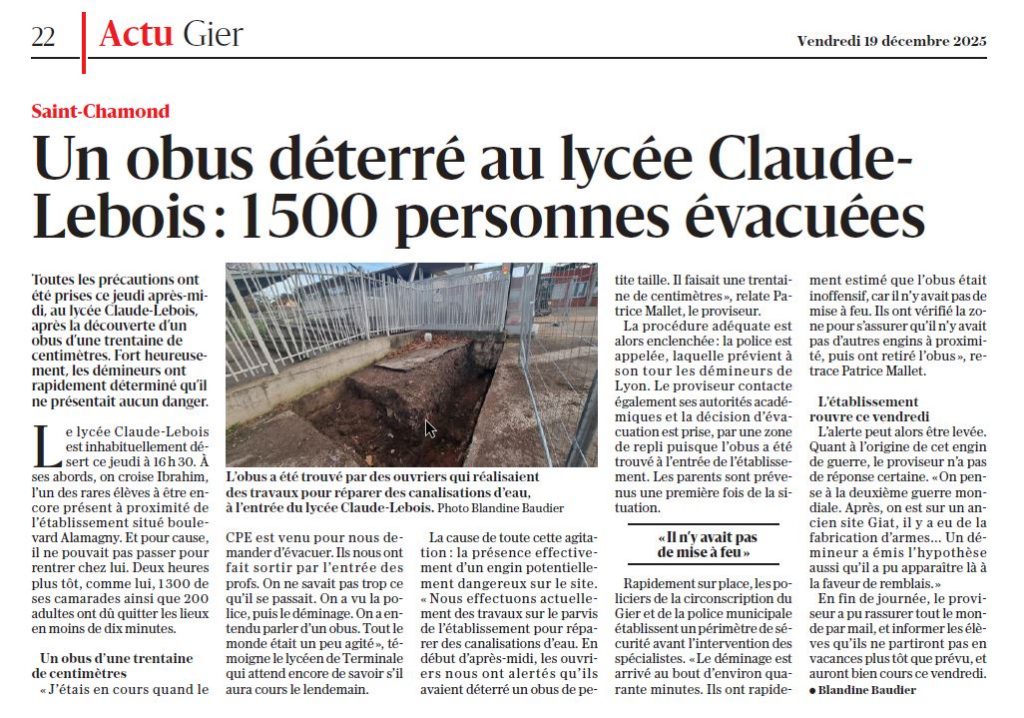 Article du journal « Le Progrès » – édition du 19 décembre 2025