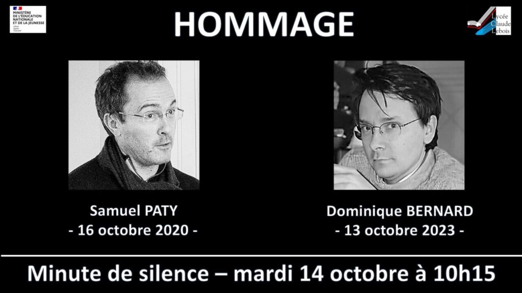 Une minute de silence sera respectée le mardi 14 octobre 2025 à 10h15 dans la Cité scolaire pour rendre hommage à Messieurs Samuel Paty et Dominique Bernard.