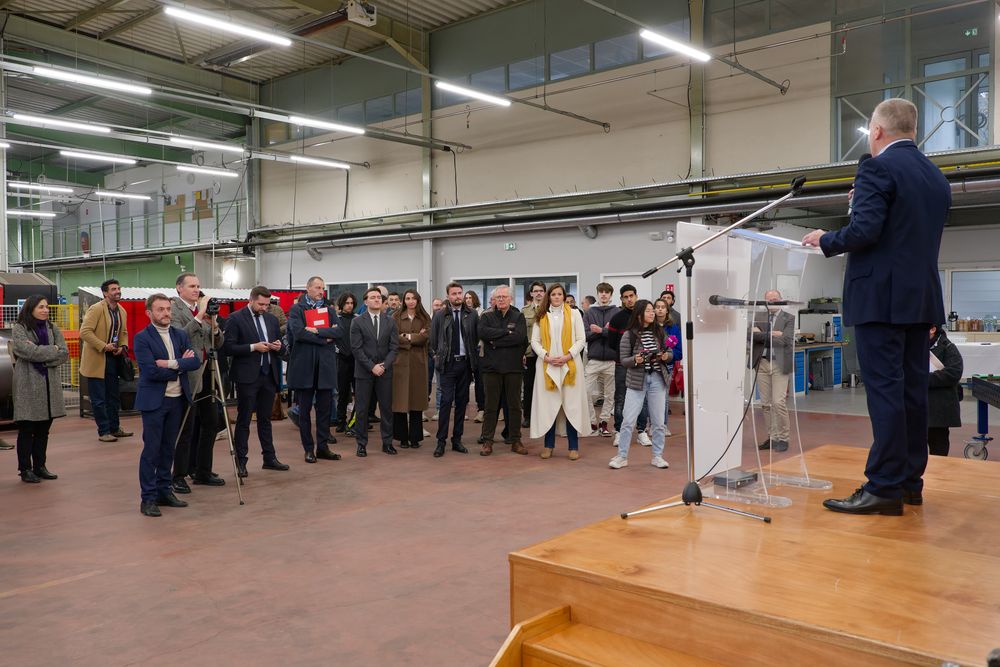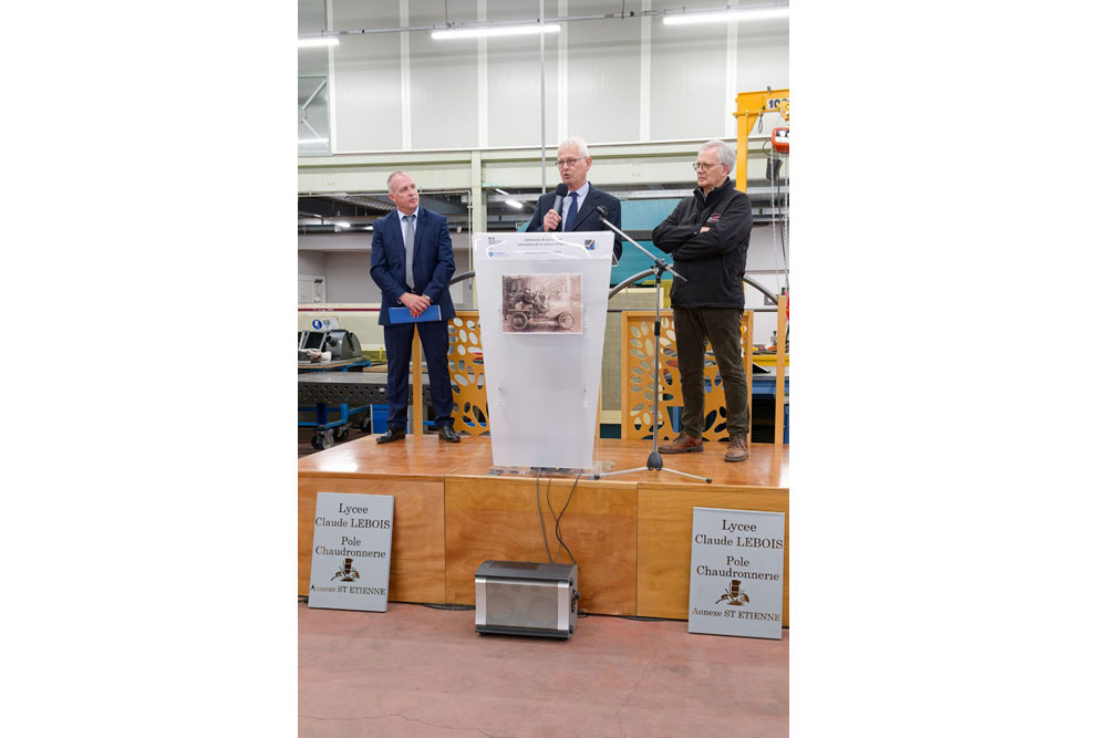 Monsieur Mallet, Proviseur de la Cité scolaire, a présenté ce projet devant monsieur le préfet de la Loire, monsieur le Député de la 3ème circonscription de la Loire, monsieur le Maire de Saint-Chamond, monsieur le 1er Vice-Président de Saint-Etienne Metropole, mesdames les conseillères régionales AURA, l’IEN de filière, plusieurs des partenaires du monde industriel et économique ainsi que du monde associatif, les équipes enseignantes et les élèves et les descendants des fondateurs de la marque messieurs De la Chapelle, Neyrand.