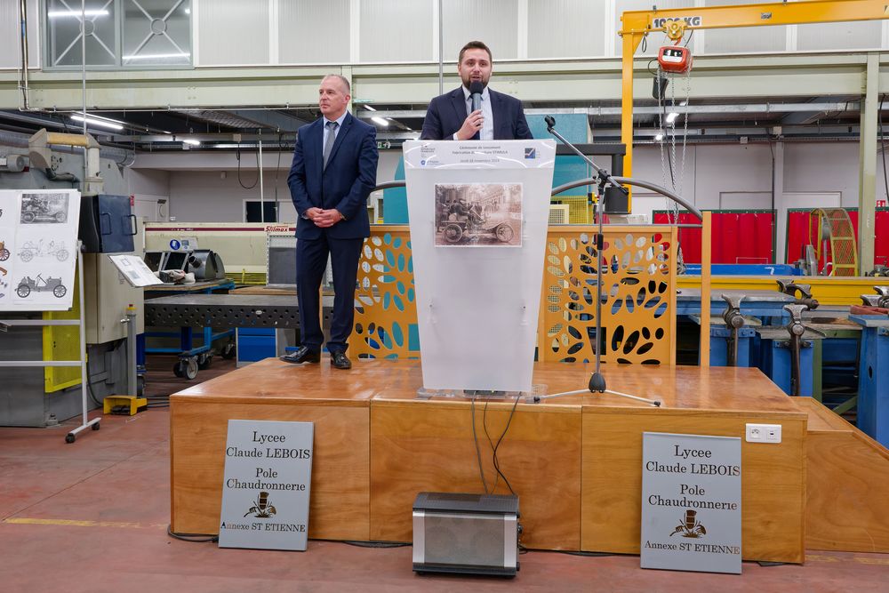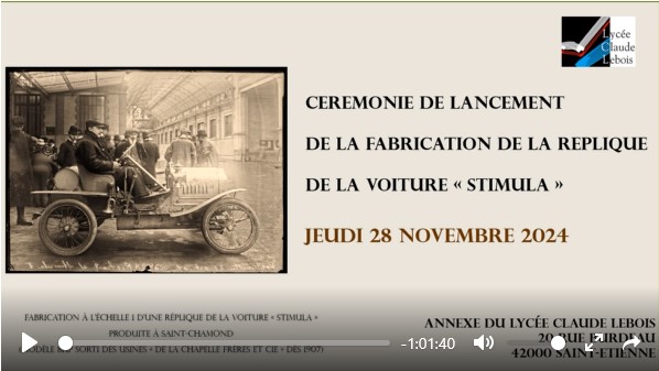 Le jeudi 28 novembre 2024, s’est tenue la cérémonie de lancement du projet de la fabrication à l’échelle 1 de la réplique de la voiture STIMULA qui a été fabriquée à Saint-Chamond à partir de 1907.
